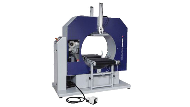 Maskinen kan göra en sträckfilmsbanderoll alternativt en hel inplastning av produkten. Maskinen startas/stoppas via medföljande fotpedal. De drivna in och utmaningstranportörerna driver produkten genom maskinen under in filmningen. Maskinen levereras med pneumatiska topp press enheter på in och utmatningen.