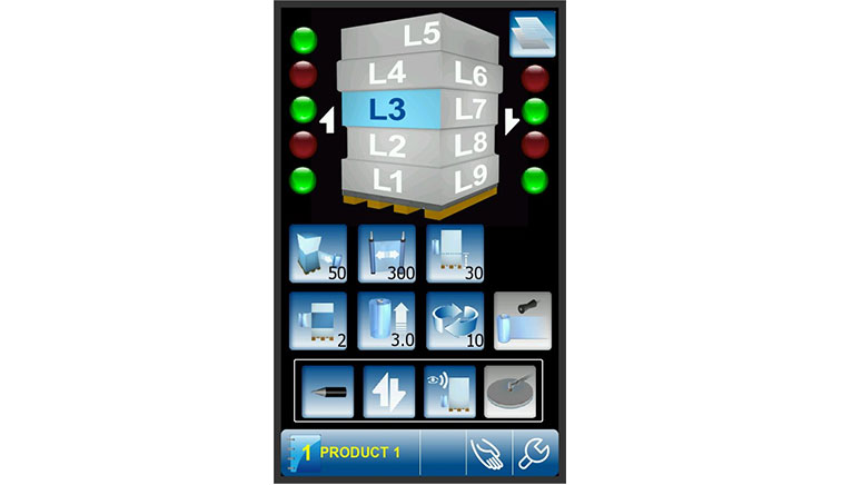 Under inställningsfasen kan operatören på ett enkelt och intuitivt sätt att välja vilka och hur många nivåer som skall vara aktiverad under den automatiska förpackningscykeln. Med detta sätt kan varje produkt förpackas med sitt egna förpackningsprogram. En kontroll som gör marknadens bästa förpackningar på lägsta tid och lägsta möjliga sträckfilmsförbrukning.